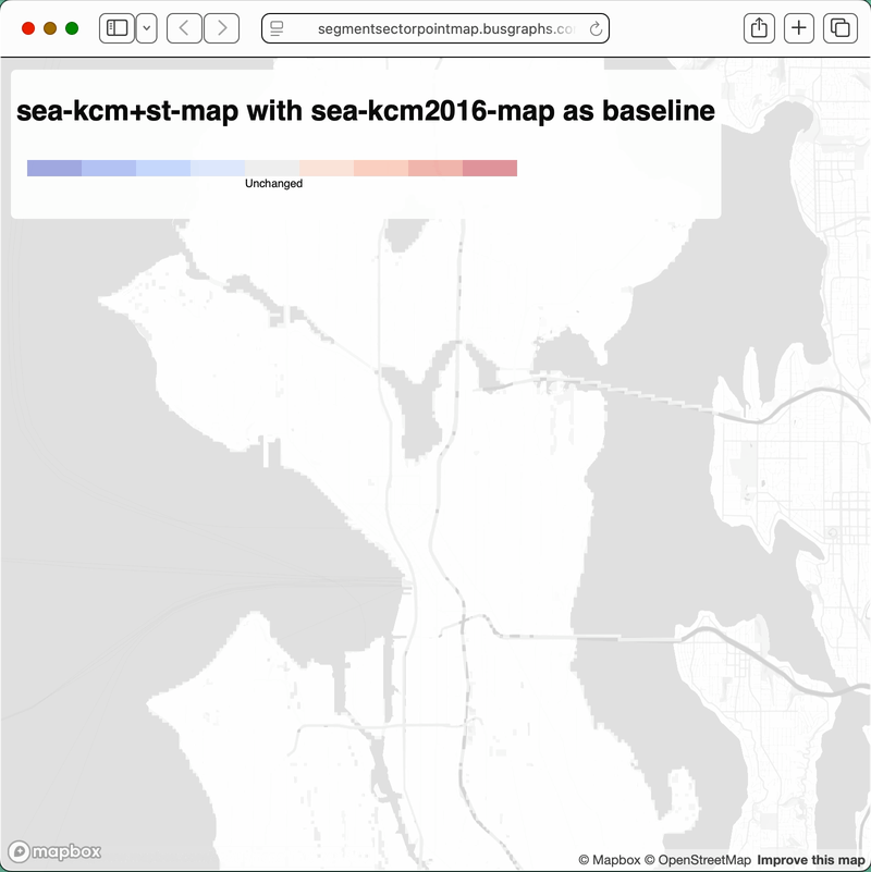 Back then, I began to appreciate access maps as useful for making comparisons when public transit networks are in flux. These same maps can also look backward to see how access has changed over time. I recently built three styles of sector-centered comparative access maps that use arf’s outputs, and will demonstrate them by comparing Seattle’s present day transit service to that which existed just before the University Link extension opened.